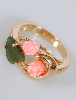- Кольцо с кораллом и нефритом "2 розы 1 лист ободок" в каталоге Кольцо в Москве;