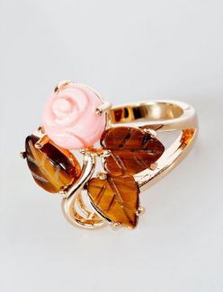 - Кольцо с кораллом и тигровым глазом "1 резная роза 3 листа" по выгодной цене 600 р. руб.;