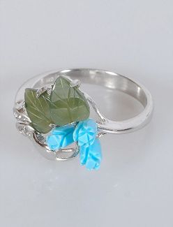 - Кольцо серебряное с бирюзой и нефритом "3 розы 2 листа сердечко" в каталоге Кольцо в Москве;