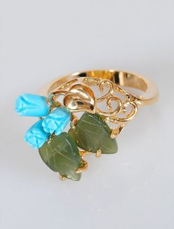 Закажите Кольцо серебряное(gold) с бирюзой и нефритом "3 розы 2 листа сердечко" у компании Lotus в Москве на портале Alloy: