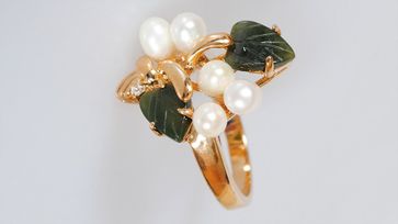 - кольцо жемчуг-нефрит 5 жемчужин букет в каталоге Кольцо в Москве;