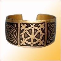 На перстне изображена буква древнеславянского алфавита “Ж”- “Живете”, означающаяблагожелание долгой и счастливой жизни. (Тиснение)