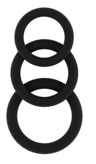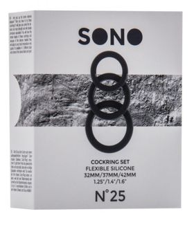 Набор из 3 чёрных эрекционных колец SONO No.25 разного диаметра. Внутренний диаметр большого кольца - 3 см., внешний - 4,2 см.<br> Внутренний диаметр среднего кольца - 2,5 см., внешний - 3,7 см.<br> Внутренний диаметр малого кольца - 2,2 см., внешний - 3,2 см.<br> None