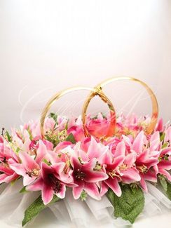 - Свадебные кольца на машину Gilliann розовые лилии CAR022 в каталоге Кольцо в Москве;