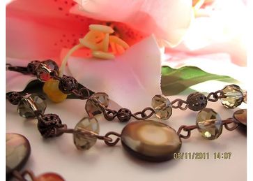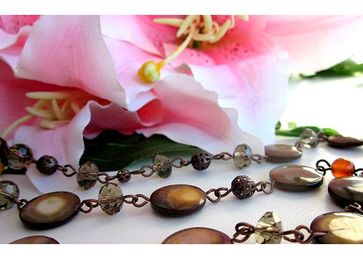 Цвет: коричневый с отливом Материалы: натуральный перламутр, сердолик, хрусталь Сваровски Кол-во: 1 Авторская работа Автор: Marussy