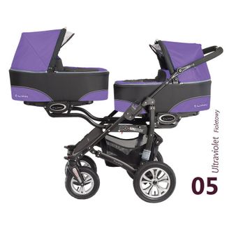рама с 2 плавающими колесами 6 амортизаторами 2 люльки с матрасиками 2 прогулочных блока по 2 капюшона (д/люльки и д/прогулки) по 2 чехла на ноги (д/люльки и прогулки ) сумка для мамы тканевая корзина для вещей