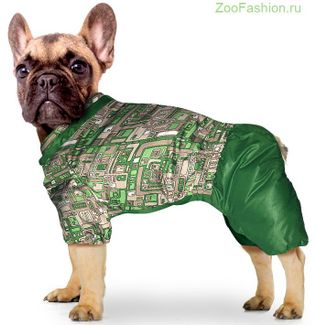 Зимний комбинезон для француза. Подкладка: синтепон и мех. Светоотражающий кант. Застёжка:молния на спине. Размер: спина 40 см, грудь 64 см. Комбинезон является универсальным и подходит как для суки, так и для кобеля (необходимо вырезать на нижней части комбинезона область, обработанную машинной строчкой). None
