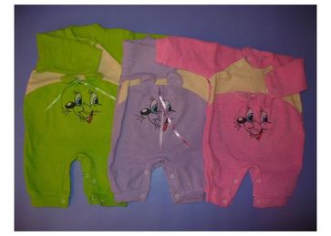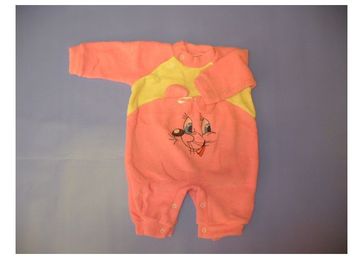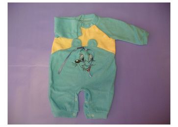 Ткань: 100% хлопок,махра,начес.Комбинезон "Мышка" с внешней стороны махра, с внутренней начес.Спереди вышита мордочка мышки и торчат ушки.Застегивается: снизу на кнопках, вверху с боку на кнопках.