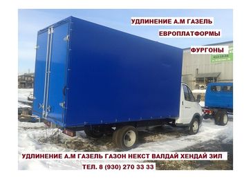 На удлиненное шасси Газель , Валдай, ГАЗ 3309, 3302, 33023, 33104, 3308, 3307 возможна установка еврофургона, фургона отличающегося повышенной жесткостью, что обеспечит наилучшую сохранность перевозимого груза.