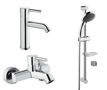 Механизм: керамический картридж Материал: латунь Покрытие: хром В комплекте: аэратор / душевая лейка / душевой шланг / настенный держатель / гибкая подводка/смеситель для раковины/ смеситель для ванны None