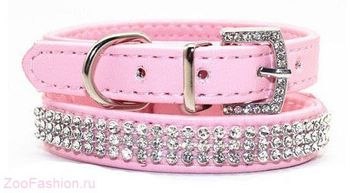 Роскошный ошейник с множеством сияющих камней. Ошейник выполнен из кожзаменителя и в центральной части украшен рядами белых страз. Ремешок застегивается при помощи металлической пряжки. Ошейник имеет пять отверстий, позволяющие регулировать его объем с учетом размеров собаки. None