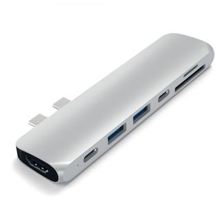 - USB-C адаптер Satechi Aluminum Type-C Pro Hub Adapter для MacBook Pro 13 и 15 40Gbs Thunderbolt 3, HDMI, Pass-Through Charging, SD Micro Card Reader, 2 USB 3.0 Ports (Silver) по выгодной цене 7 590 р. руб.;