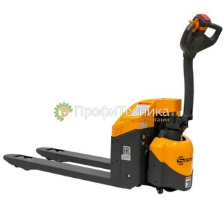 Грузоподъемность 1500 кг, АКБ 65 Ah, высота подъема 190 мм, длина вил 1150 мм, общая длина 1654 мм, ширина несущей поверхности вил 550 мм, вес 200 кг. None