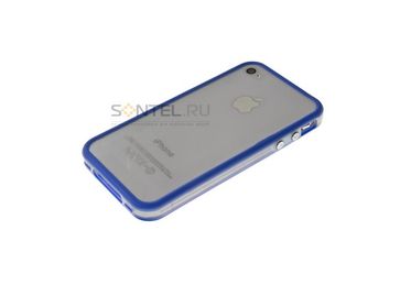- Бампер Яблоко для iPhone 4 прозрачный синий по выгодной цене 300 р. руб.;