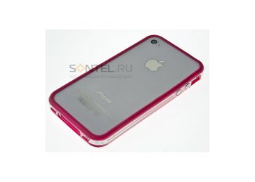 - Бампер Яблоко для iPhone 4 прозрачный темно розовый по выгодной цене 300 р. руб.;
