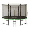 Eclipse Space Twin Blue/Red 12FT Батут с защитной сетью диаметром 12ft (366 см) Технические характеристики: . Тип защитной сетки: внутренняя . Рама: гальванизированная сталь, 38 х 1,3 мм . Ножки: 4 шт, гальванизированная сталь, 38 х 1,2 мм . Пружины: 72 шт, длина 165 мм, бочкообразные . Прыжковое полотно: Permatron . Защитный мат: PVC, плотность 350 г/смі, толщина 15 мм . Материал защитной сетки: Terylene, вход внахлест (клапан) . Стойки защитной сетки: 8 шт, гальванизированная сталь . Цвет: синий и красный (двусторонний мат) . Артикул: SPACETWINBLUERED12FT . Гарантия: 12 месяцев . Торговая марка: Германия . Страна изготовления: Китай . Максимальная нагрузка на батут: 150 кг В комплекте: . Батут . Верхняя защитная сеть . Нижняя защитная сеть . Лестница . Сумка для обуви Высота батута с защитной сеткой: 255 см Высота защитной сети: 170 см Высота основания батута: 85 см Вес: - кг Описание: Батут с защитной сетью Eclipse Space Twin Blue/Red 12FT диаметром 366 сантиметров станет хорошим выбором если вам нужен качественный батут от фирмы Eclipse. Батуты Eclipse изготовлены по Евро стандарту и обладают целым рядом преимуществ которые выделяют производителя на фоне конкурентов и ставят Немецкого производителя на первое место в станах Европы в категории цена качество. Защитная сеть и лестница входят в комплект со всеми моделями и размерами батутов, Eclipse всегда ставит на первое место безопасность детей и их родителей. Прыжковое полотно изготовлено из высококачественного Перматрона (Permatron) разработанного по немецкой технологии и полностью соответствует евро сертификату EN71. Полотно устойчиво к частому изменению погоды, вы можете не беспокоится о батуте оставляя его под дождем. Безопасные пружины батутов Eclipse доказали свою надежность в предыдущих сериях, безупречное качество и высокие прыжковые характеристики обеспечивает современные технологические решения, как выверенная длина пружин с максимальной амплитудой прыжка так и гальванизированной сталью высокого к