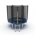 EVO Jump External 6ft (Blue) Батут с внешней сеткой и лестницей диаметром 6ft (183 см) Технические характеристики: . Рама: гальванизированная сталь 38 х 1,4 мм . Материал прыжкового полотна: полипропилен перматрон . Материал защитного мата: полиэстер + ПВХ . Материал защитной сетки: полиэстер, тройное плетение . Тип защитной сетки: внешняя . Количество пружин: 36 шт, размером 136 х 3,0 мм . Основание батута: 3 W-образные ноги . Верхние стойки: 6 шт . Вход на молнии с блокираторами на защелках . Конструкция: стационарная . Комплектация: - батут - верхняя защитная сеть - лестница - инструкция на русском языке - специальные носочки с силиконовым противоскользящим протектором (подарок) . Стандарты качества: TUV-GS and CE . Цвет: синий . Гарантия: 2 года . Торговая марка: Германия . Страна изготовления: Китай . Максимальная нагрузка на батут: 120 кг Размеры и вес в упаковке: 103 х 50 х 20 см / 26 кг Высота батута с защитной сетью: 210 см Высота защитной сети: 150 см Высота рамы: 60 см Вес: 24 кг Описание: Батут с внешней сеткой и лестницей EVO Jump External 6ft (Blue) диаметром 6ft (183 см) представляет собой не только отличную игровую зону для детей, но и своеобразный спортивный тренажер, с помощью которого стимулируется кровообращение, совершенствуется координация и чувство равновесия, развивается вестибулярный аппарат, формируется выносливость и укрепляются мышцы всего тела. Всего 15-20 минут прыжков на батуте заменяют час изнурительных тренировок в тренажерном зале, а 10 минут - пробежку дистанции в 3 километра. Прочный и легкий в сборке батут EVO Jump External 6ft (Blue), диаметром 183 сантиметра, принесет море радости и здоровья Вам и Вашим детям. В подарок к батуту идут специальные носочки с силиконовым противоскользящим протектором, который исключит соскальзывание ноги с поверхности батута. Благодаря комбинации участков с различной эластичностью, носочки максимально удобны для стопы и щиколотки. Изготовлены из гипоалергенного трикотажа в состав ко