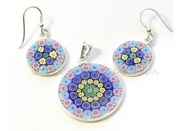 - Комплект из венецианского стекла в стиле Миллефиори (Millefiori) 23 мм. Серебро 925 проба по выгодной цене 2 200 р. руб.;