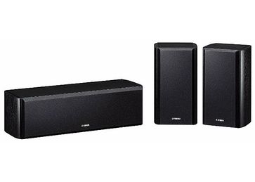 Мини-комплект для домашнего кинотеатра, состоящий из 2 акустических систем окружающего звука, и акустической системы центрального канала. None