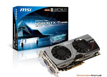 - Видеокарта 1Gb <PCI-E> MSI N560GTX-Ti HAWK с CUDA <GFN560Ti, GDDR5, 256 bit, HDCP, 2*DVI, HDMI, Retail> по выгодной цене 9 056 р. руб.;