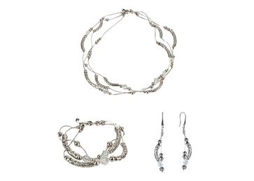 Артикул: КТ53281-001 Актуальные, изящные украшения с безупречными кристаллами SWAROVSKI ELEMENTS подчеркнут Вашу уникальность и женственность! Цвет: Цвет бус, браслета и серег - серебристый, цвет кристаллов - Crystal. Размеры: Бусы: 48 см, 51г; браслет: 20 см 19г; серьги: 7,5 см, 9г. Состав: Детали и застежка - бижутерный антиаллергенный сплав, бусины кристаллы SWAROVSKI ELEMENTS. Упаковка: Фирменная упаковка, ярлычок SWAROVSKI ELEMENTS, ярлычок BON VIE, сертификат BON VIE. Страна дизайна: Франция. Страна производства: Франция.