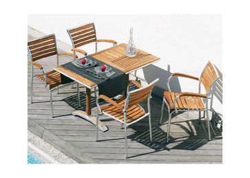 Miami – массивные складные кресла из алюминия и тика. Уникальный стол с тиковой отделкой ножек и шахматным рисунком на крышке. Может использоваться со стульями Kreta. при заказе от 30 тысяч рублей - 100% предоплата. Есть доставка.