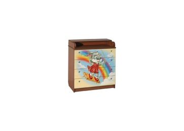 Имеет современную форму и четыре удобных ящика. Благодаря гибкости и твердости, изделия при нагрузке не подвержены изломам, это обеспечит безопасность Вашего малыша. Верхняя крышка комода раскладывается что увеличивает площадь поверхности стола для пеленания малыша. Комод не имеет острых углов. Фурнитура, применяемая для сборки комодов Blum (Австрия) и Hettich (Германия) обеспечивают долгую, надежную работу всех подвижных частей конструкции Для отделки используются безопасные нетоксичные материалы и красители Оригинальный рисунок нанесен вручную, методом Free hand, Аэрография. Ширина пеленального стола в разложенном виде 80 см Характеристика: четыре вместительных ящика высота 935, ширина 800, глубина 450 мм. корпус ДСП фасад МДФ, Аэрографический цветной рисунок Верхняя крышка комода облицована противоударной ПВХ-кромкой Цвет: клен/ваниль, орех/ваниль. None Есть доставка.
