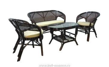Комплект для отдыха 02/15/1 состоит из двухместного дивана, двух кресел и столика. Размеры (ШхВхГ), мм: Диван: 1200х770х670 Кресло: 660х770х670 Столик: 870х500х500 Материал: ротанг подушки - ткань Цвет: коньяк, мед, шоколад, кофе Минимальная сумма заказа 1000 рублей. Возможен самовывоз.