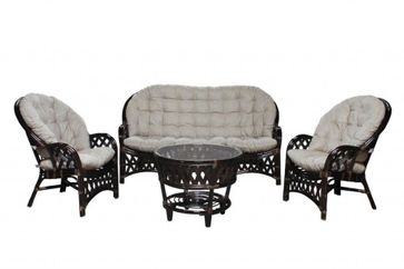 Комплект для отдыха Черчилль-3 состоит из трехместного дивана, двух кресел и столика. Размеры (ШхВхГ), мм: Кресло: 700х960х750 Диван: 1700х960х750 Столик журнальный: 700х450х700 Материал: ротанг подушки - ткань Цвет: коньяк, мед, шоколад, кофе, олива Минимальная сумма заказа 1000 рублей. Возможен самовывоз.