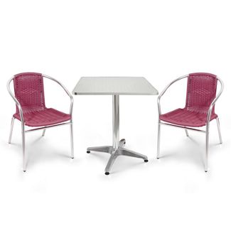 Стол: L600xW600xH700 мм Столешница: нержавейка, края катанные, цельный лист Подстолье: D58 Стул: H740xW580xL540 мм Каркас: труба алюминий D25 Материал: искусственный ротанг Цвет: Bordo Объем: 0,4, вес - 12 кг Минимальная сумма заказа 1000 рублей. Возможен самовывоз.