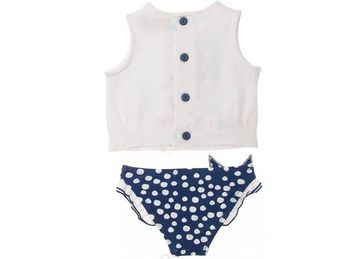 Оригинальное танкини - трикотажная футболка и плавки. Плавки предлагаются в индивидуальной упаковке в виде сумочки. Размер: 24 мес. Материал: верх: 95% хлопок, 5% эластан Низ: 80% полиамид 20% эластан. Производитель: Португалия. Цвет: белый, синий. None Есть доставка. Доставка: 300.0RUR