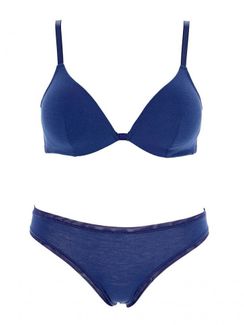Комплект из вискозы с эластаном: бюстгальтер без каркасов с поролоновым уплотнением в чашках и трусы по бедрам фасона бразилиано. Во всех размерах полнота чашки бюстгальтера B. В комплекте: лиф, трусики. None