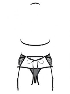 Комплект нижнего белья Uniquella с поясом для чулок, выполнен из полупрозрачной сетки с цветочным узором. Бюстгальтер с мягкими чашками без косточек. Бретель фиксируется за шеей. Изделие упаковано в красивую плотную коробочку. В комплекте: бюстгальтер, пояс, трусики-стринги. None