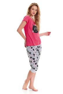 Забавная пижама с принтом в виде кошки на футболке (р. XL, серый с белым)