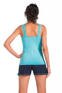 Легкий женский пижамный комплект Klaudia состоит из майки на широких бретелях и шорт. V-образный вырез горловины декорирован кружевом. В комплекте: майка, шорты. None