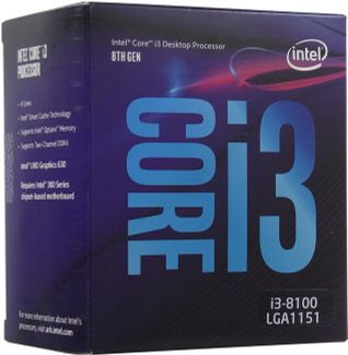 - CPU Intel Core i3-8100 BOX 3.6 GHz 4core SVGA UHD Graphics 630 6Mb 65W 8 GT s LGA1151 по выгодной цене 7 840 р. руб.;