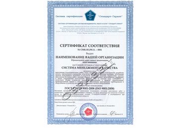 Сертификат «Стандарт-Гарант» станет гарантией Вашей организации для всех целевых групп, подтверждая внедрение Системы Менеджмента Качества, подтверждая что Вы располагаете необходимой материально-технической базой, системой управления качеством, которая отвечает международным стандартам, а также квалифицированными сотрудниками;