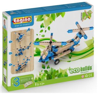 <p>Инновационная разработка Engino &mdash; гибридные конструкторы, которые содержат как пластмассовые, так и деревянные детали.</p> <p>При сборке моделей с деревянными элементами нет необходимости использовать клей или дополнительный крепеж.</p> <p>Серия Eco Builds объеденяет в себе тепло и экологичность дерева и широкие возможности пластиковых сборочных систем.</p> <p>В комплекте инструкция для сборки 3 моделей вертолетов.</p> <p>Возраст: 5+</p> <p>Страна-производитель: Кипр<br /><br />Бренд: Engino<br />Вес: 0.44 кг.<br />Материал: пластик<br />Размер: 0,27х0,05х0,2</p> Наличные, безнал., карты, эл. деньги, юр. лица Возможен самовывоз. Есть доставка.