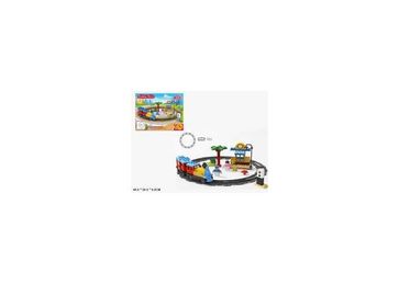Конструктор - ж/д (паровоз на бат. (свет, звук поезда), вагон, станция) в кор.