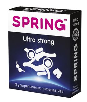 Ультрапрочные презервативы SPRING ULTRA STRONG. Качество продукции соответствует самым высоким мировым стандартам безопасности и надёжности, производство размещено на ведущих производственных площадках мира. В упаковке - 3 шт.<br> Толщина стенки - 0,085 мм. None