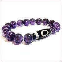 Браслет из аметиста с бусиной Дзи 1 глаз и горный пик - усиливает уверенность в себе.