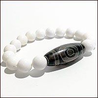 Браслет из белого агата с бусиной Дзи 3 - богатство, здоровье и успех.