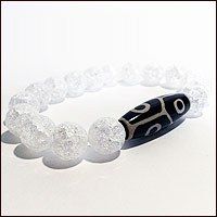 Браслет из горного хрусталя с бусиной Дзи 6 глаз - Мудрость, здоровье и долголетие
