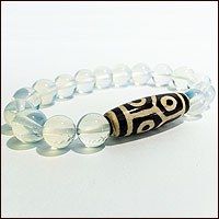 Браслет из лунного камня с бусиной Дзи 6 глаз - Мудрость, здоровье и долголетие