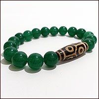 Браслет из нефрита с бусиной Дзи 6 глаз - Мудрость, здоровье и долголетие