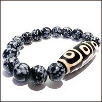 Браслет из обсидиана с бусиной Дзи 9 - моментальное богатство и неожиданная удача