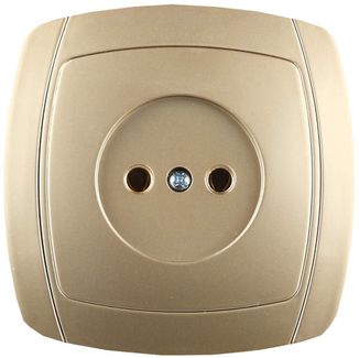 Розетка СВЕТОЗАР "АКЦЕНТ" одинарная в сборе, без заземления, цвет золотой металлик, 16А ~250В