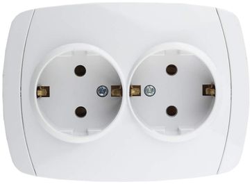 Розетка СВЕТОЗАР "CITY LIGHT" двойная в сборе, с заземлением, цвет белый, 16А ~250В
