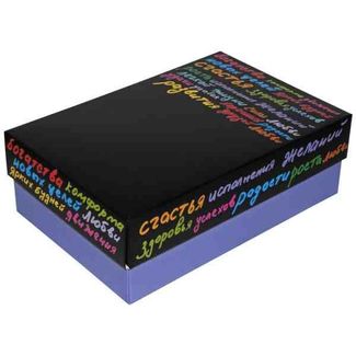 <p>Дизайнерская серия упаковки "Пожелание" - это всплеск хорошего настроения и только положительных эмоций при получении абсолютно любого подарка, упакованного в коробки и пакеты этой серии.</p> <p>Яркое и стильное полиграфическое оформление упаковки позволит выделить Ваш подарок среди остальных, делая его персональным. Специально разработанный дизайн серии "Пожелание" позволил одновременно совместить в коробках и пакетах функцию упаковки и подарочной открытки.</p> <p>Изготовление данной серии упаковки осуществляется на высокотехнологичном оборудовании с использованием всех возможностей современной полиграфии, включая полноцветную печать с последующей ламинацией.</p> <p>Дизайнерская серия упаковки "Пожелание" сделает Ваш подарок неповторимым и запоминающимся</p> <ul> <li><strong>Размеры:</strong>&nbsp;30х20х10 см</li> <li><strong>Материал:</strong> картон</li> </ul> <div>&nbsp;</div> Наличные, безнал., карты, эл. деньги, юр. лица Возможен самовывоз. Есть доставка.