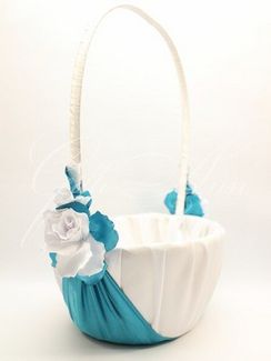 Корзинка для лепестков Gilliann Ella BAS019 Что может быть прекраснее россыпи нежных лепестков роз на свадьбе? Это стало хорошей традицией - при выходе молодоженов из ЗАГСа, перед входом в ресторан обсыпать их лепестками. В отличие от крупы, монеток, конфет, они не вызывают никаких неудобств - не нужно прятать лицо, прическу, опасаться, что забьется в складки одежды. Большое внимание нужно уделить выбору корзинок, от них во многом зависит, как удачно пройдет этот ритуал. Корзинка Ella сделана из белого атласа, с внешней стороны по дну до ручек обтянута атласом голубого цвета. Ткань крепится к ручкам восхитительными розами, сделанными в бело-голубой гамме. Материал и декор: атлас, декоративные элементы. None